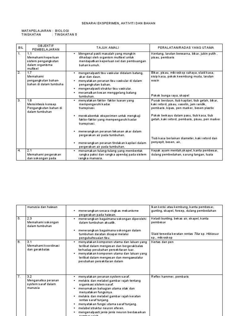 Senarai Eksperimen Wajib Biologi Tingkatan 4 Dan 5 Tahun 2020 Pdf Ilmu Kimia Alam