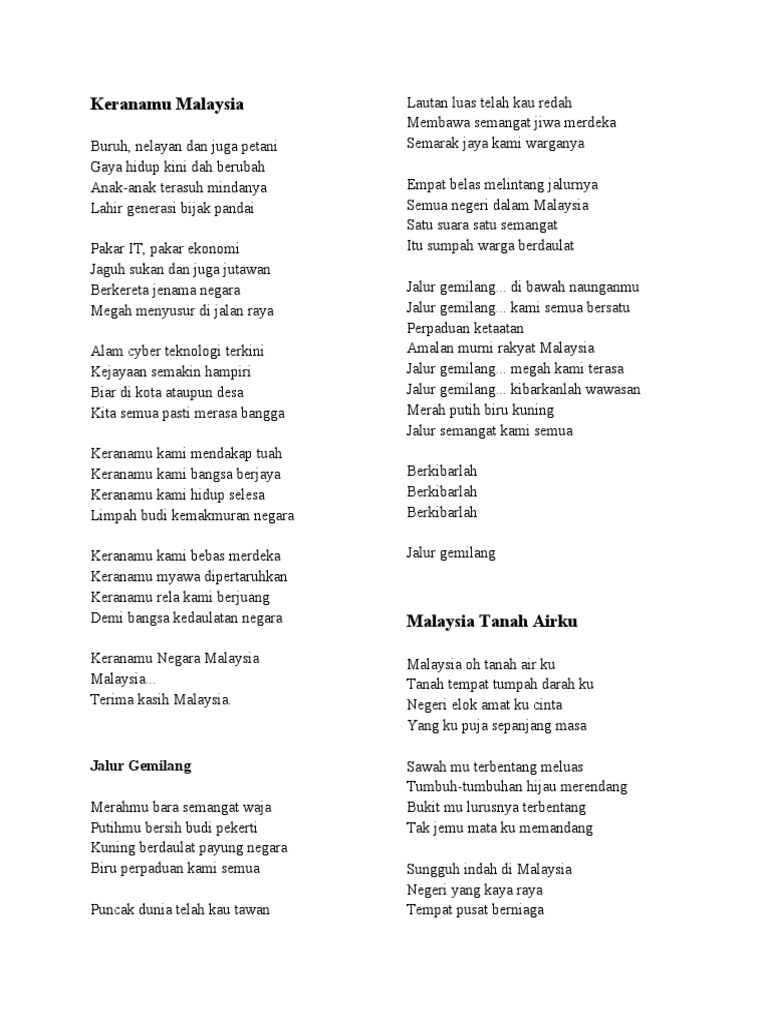. Berkaitan dengan lagu patriotik Keranamu Malaysia.